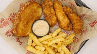 Huey Magoo’s is all about the chicken tenders. Fresh, hand-breaded or grilled, and cooked to perfection. You can get them as meals with fries, on top of salads, or even in wraps and sandwiches. It hits the spot when you’re craving something crispy and satisfying.